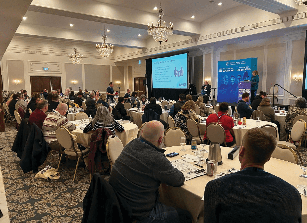 - October – Political Action in Canada: IAM Local 3111 President Kelly Codner presents Canada’s election rules to union members attending the Canadian Labour Congress Political Action Conference. Photographer: Roswita Hildebrandt IAM Local 2797