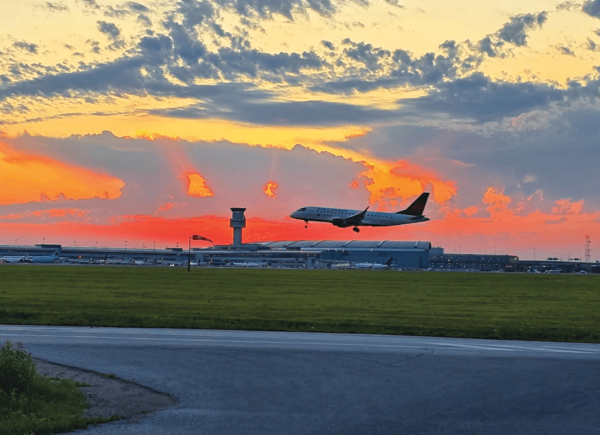 - September – Sunset Landing: An Air Canada/Jazz E75 lands during sunset. Photographer: Peter Stockley IAM Local 2323